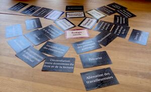 L’atelier du livre déchaîné est un jeu collaboratif basé sur les principes d’éducation populaire et inspiré des jeux comme la fresque du climat et celle des résistances. Comme le travail de l’Association pour l’écologie du livre, il s’inscrit dans une approche radicale (dans le sens où il tend à prendre les problèmes à la racine) pour essayer de comprendre la complexité de l’écosystème du livre, se distinguant, en cela, d’autres fresques du livre existantes. Son positionnement est à l’origine ancré dans les réflexions anticapitalistes, décoloniales, féministes et contre toutes les formes de domination.