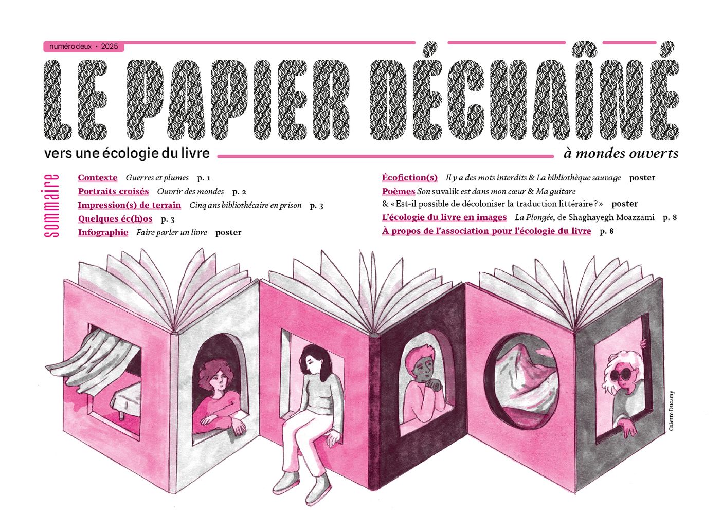 Le troisième et dernier numéro du Papier Déchaîné, intitulé « à mondes ouverts », s’intéresse cette fois-ci à l’écologie symbolique. Par des rencontres avec des maisons d’éditions indépendantes, des lieux de lecture hors des circuits traditionnels et des approches différentes des langues, nous souhaitons montrer que la bibliodiversité se trouve dans la pluralité des contenus et des lieux du livre.